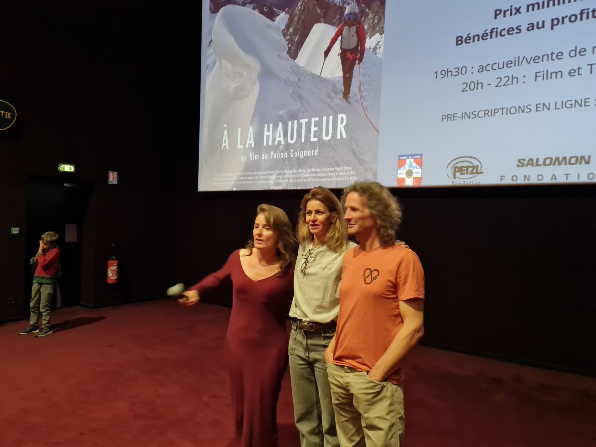 Florence Van de Velde, médecin cancérologue, avec Jordane Liénard, marraine de l’association Bivouac&moi et le guide chamoniard Fred Bréhé (© Pierre Nouvelle).