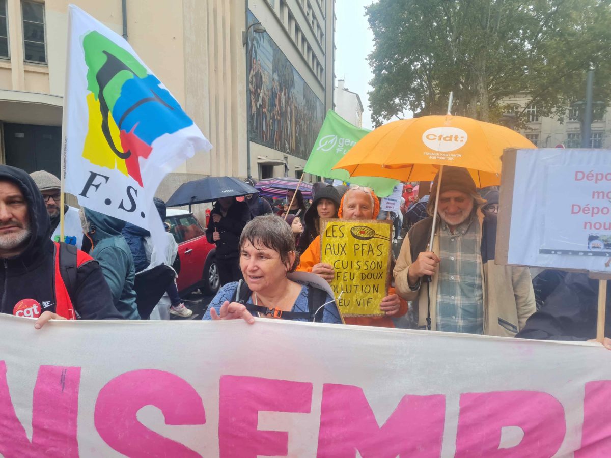 Les syndicats CGT, FSU et CFDT soutenaient la manifestation lyonnaise contre les Pfas (© Pierre Nouvelle).