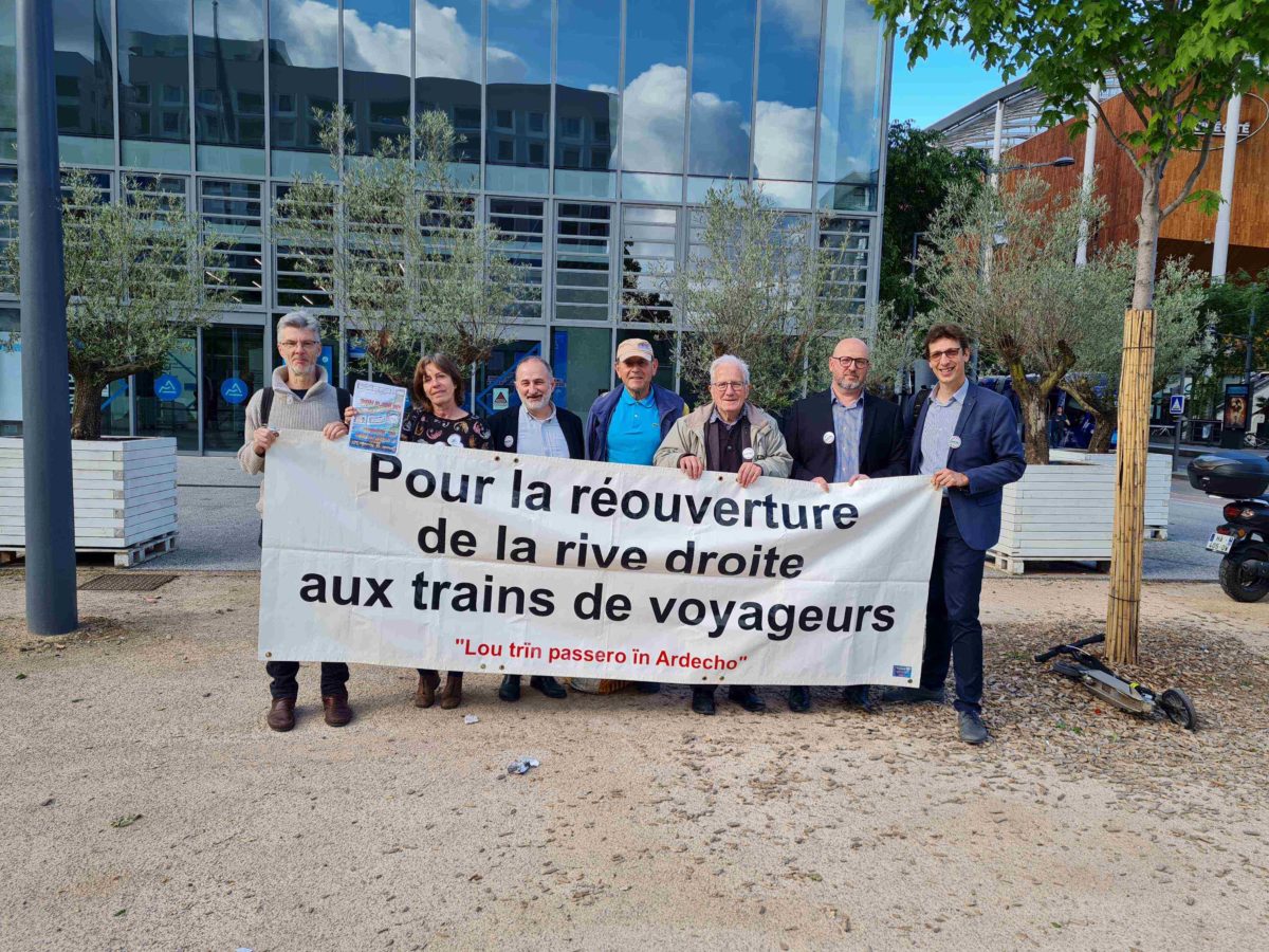 Les trains de voyageurs sur la rive droite du Rhône est l’attente des habitants des départements du Rhône, de la Loire et de l’Ardèche. Dans ce dernier département, qui occupe au moins la moitié de la vallée, on est de plus en plus impatient. Nos collègues de France 2 et France 3 ont témoigné de cette attente à l’occasion de reportages que nous vous livrons. ont témoigné de cette attente à l’occasion de reportages que nous vous livrons.