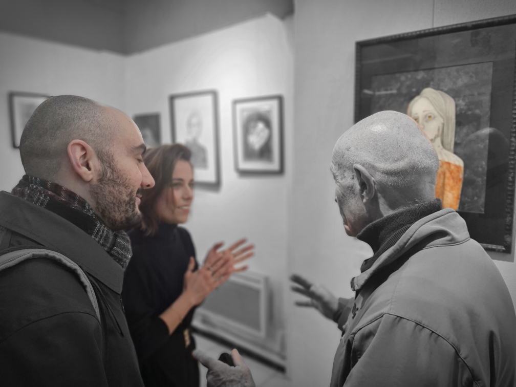Le vernissage de l’exposition de l’association Azoth était l’occasion pour les artistes comme ici l’Ampuisait Gilbert David, de présenter leurs œuvres et la démarche qui les sous-tend(© Pierre Nouvelle).