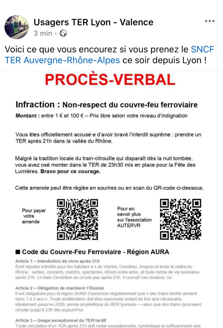 Commencée en septembre 2024 en gare de Vienne (Isère), l’action pour rompre le couvre-feu ferroviaire qui frappe les liaisons Lyon-Vienne-Valence après 21h, s’est poursuivie les 6 et 7 décembre 2025 et a rencontré l’enthousiasme des voyageurs(© DR/AuterVR).
