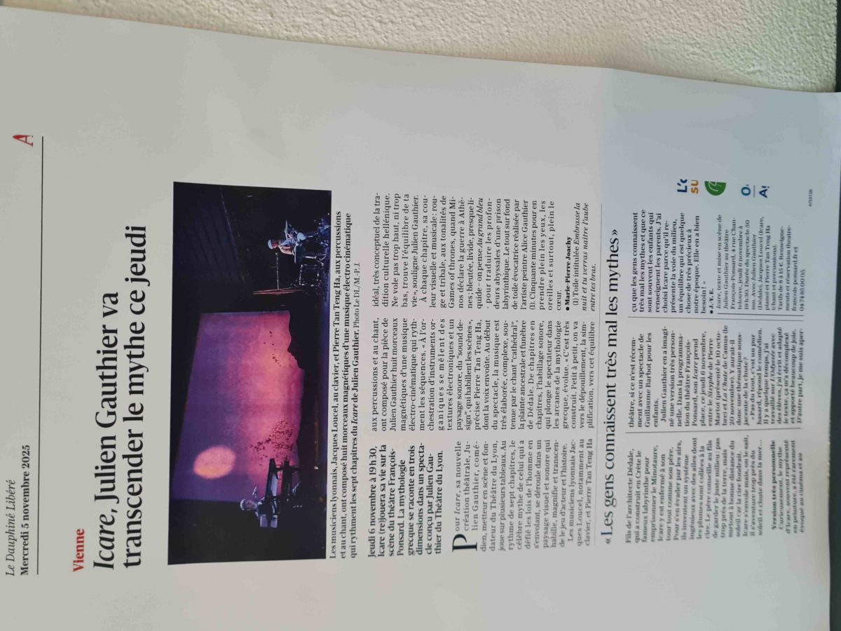 Cinquième spectacle de la saison du Théâtre François Ponsard, Icare a donné à Julien Gauthier de remettre en valeur ses talents de metteur en scène et de comédien (© Théâtre du Lyon)