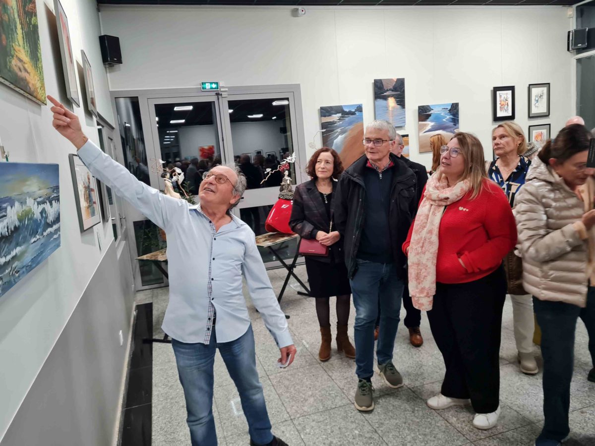 Le vernissage de l’exposition de l’association Azoth était l’occasion pour les artistes comme ici l’Ampuisait Gilbert David, de présenter leurs œuvres et la démarche qui les sous-tend