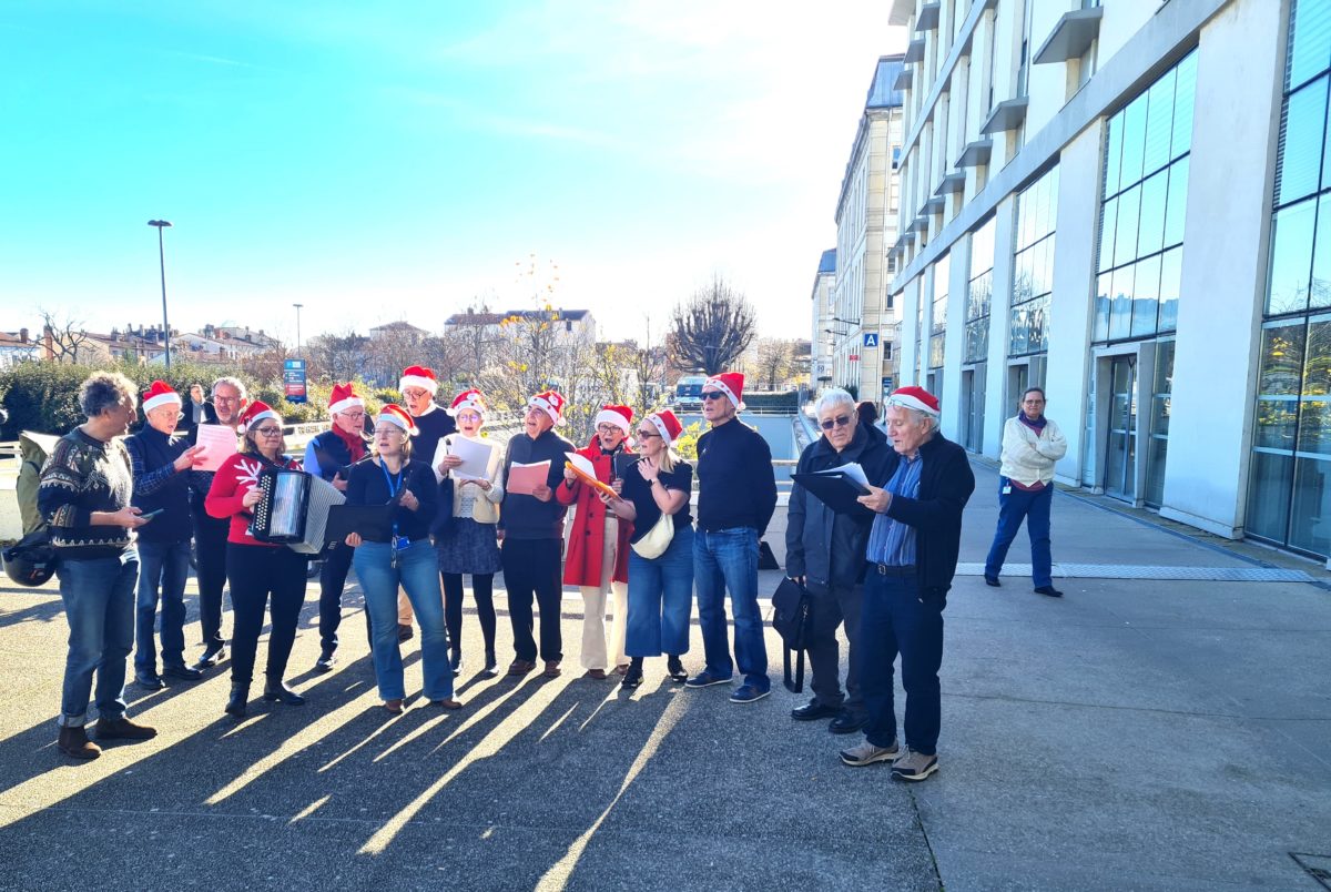 Après sa prestation mardi 9 décembre 2025 dans le hall de l’hôpital lyonnais de la Croix Rousse, c’est à l’hôpital gériatrique Frédéric Dugoujon (Caluire) que la quinzaine de choristes des HCL s’est à nouveau produite ce vendredi 12 décembre 2025.