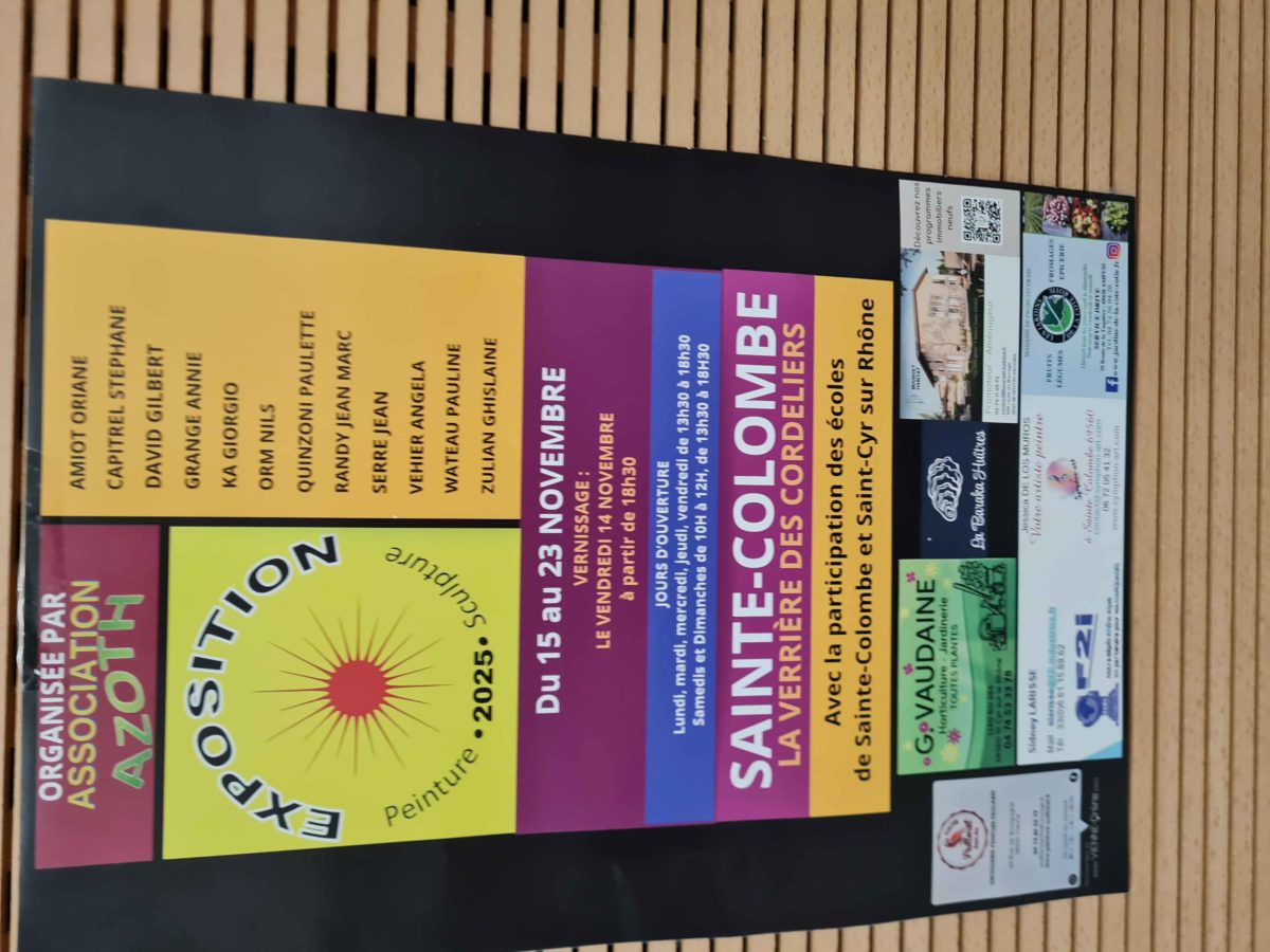 Vendredi 14 novembre 2025, on se pressait dans la Verrière des Cordeliers de Sainte Colombe (Rhône). Dans cette belle salle qui domine le fleuve Rhône, et face à la ville de Vienne (Isère), le public n’avait pas voulu rater le vernissage de l’exposition qui réunissait une cinquantaine d’oeuvres.