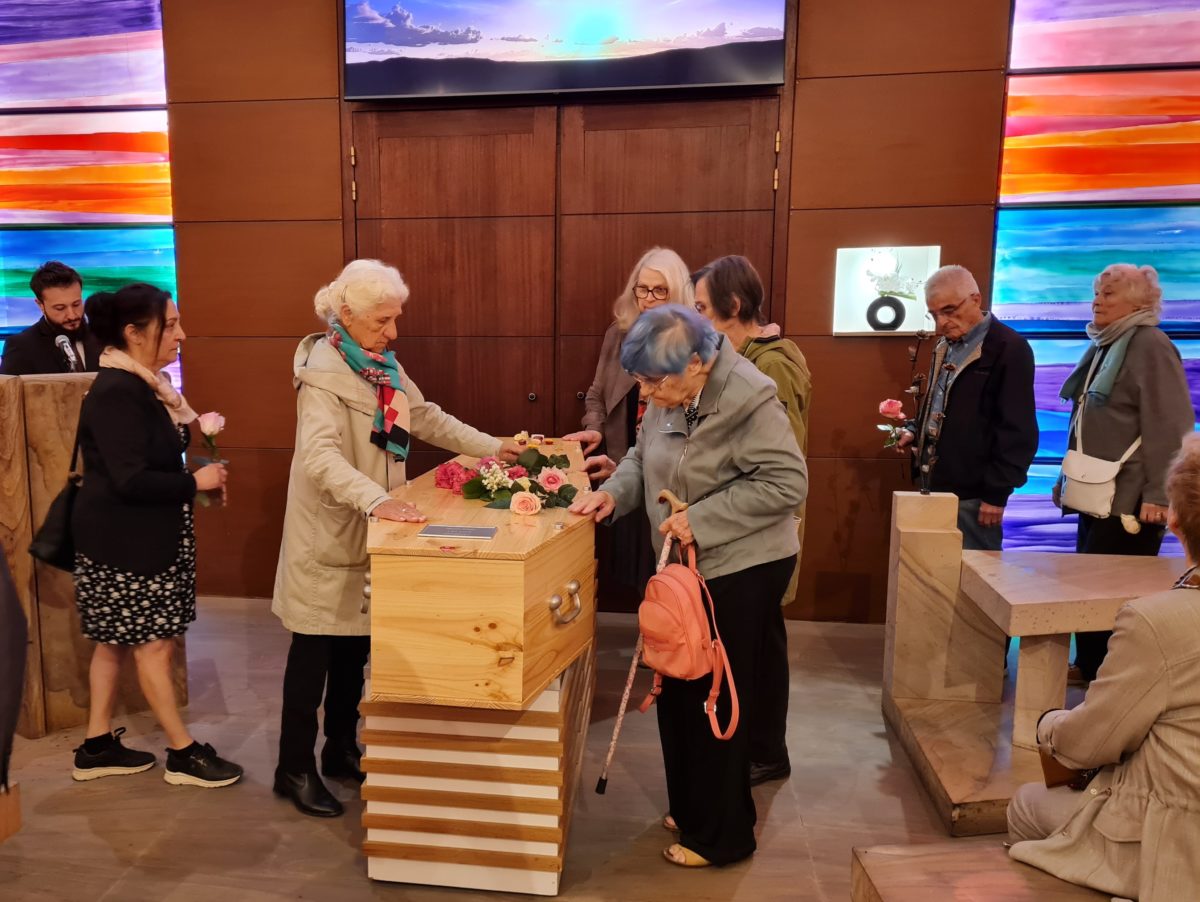 Devant le catafalque, une cinquantaine d’ami.e.s est venu se recueillir. La plupart sont des habitants de Vienne (Isère) qui ont milité avec elle, notamment dans les rangs de la section locale du Parti socialiste, dont elle était un membre discret et fidèle.